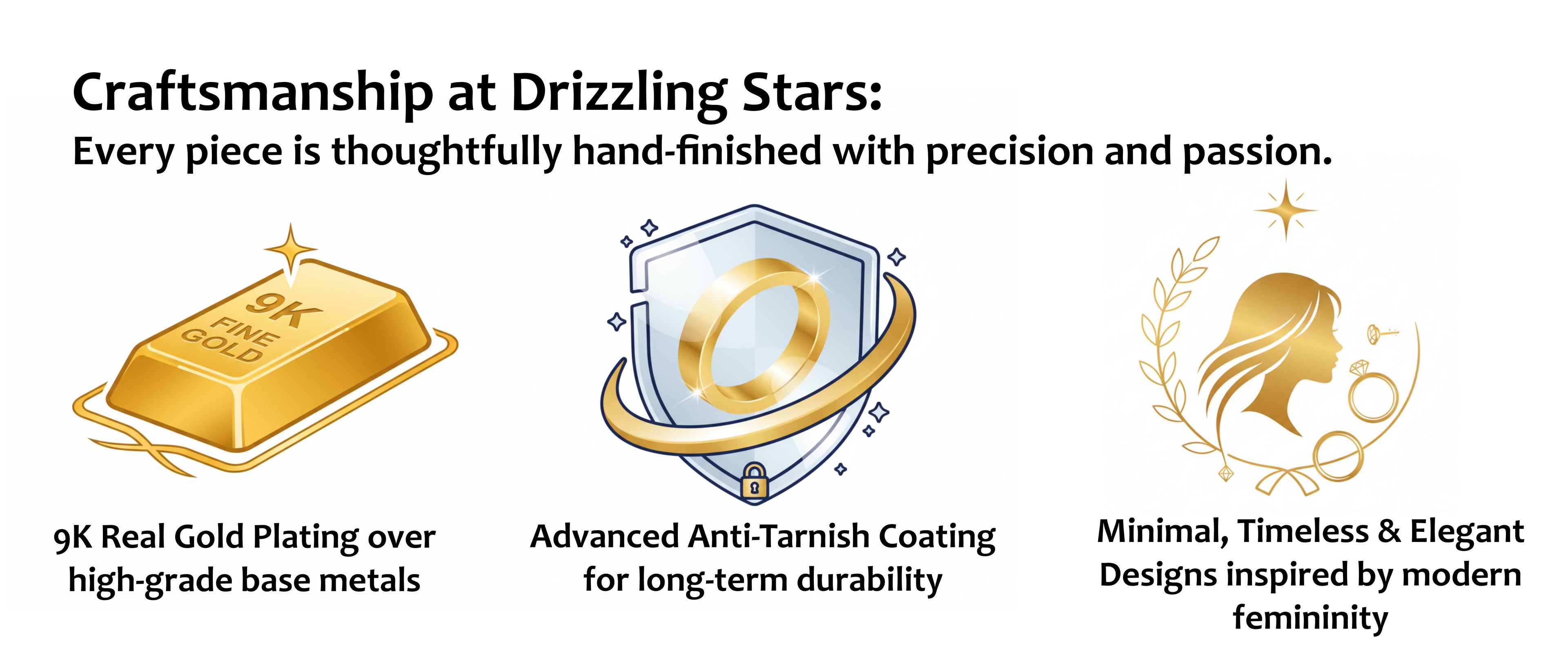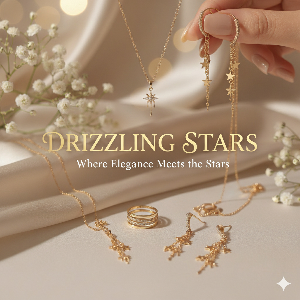 At Drizzling Stars, we believe that jewellery isn’t just an accessory — it’s a feeling, a reflection of your personality, and a celebration of everyday confidence. Our mission is simple: to bring luxury that loves your skin. We design and craft premium Jewellery that is anti-tarnish, waterproof, and 100% skin-safe — so you can shine without compromise.