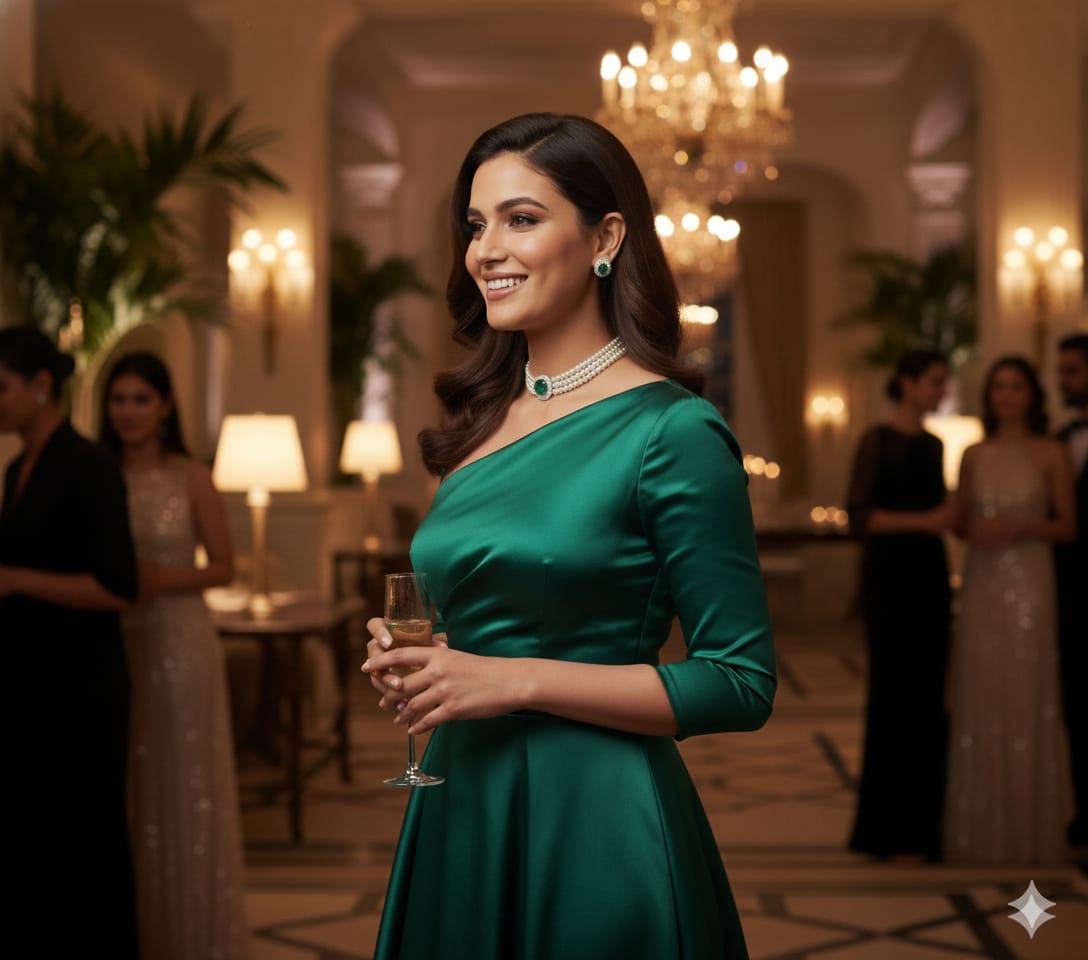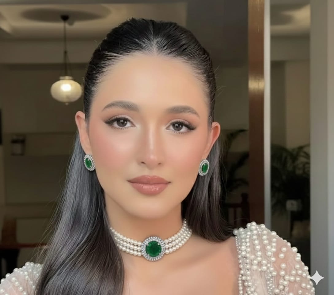 Make a graceful statement with the Emerald Royale Pearl Choker Set, a timeless blend of classic pearls and a rich emerald-green centerpiece. This elegant choker features multiple strands of lustrous pearls, beautifully highlighted by a circular emerald-toned stone surrounded with sparkling accents. Paired with matching stud earrings, this set radiates sophistication and regal charm.