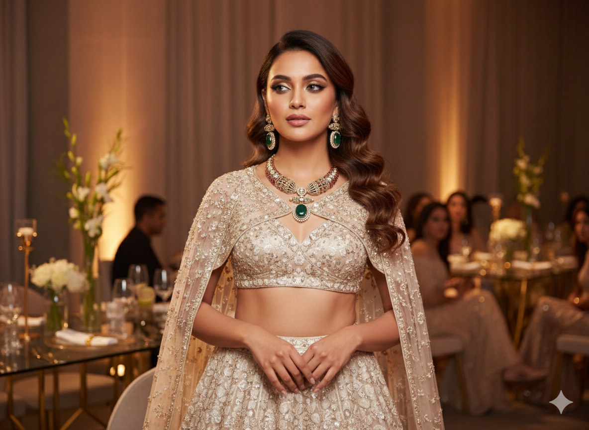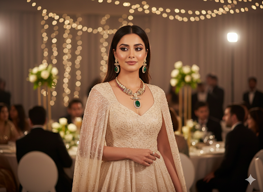 This statement piece is versatile enough for weddings, festivals, and red-carpet events.